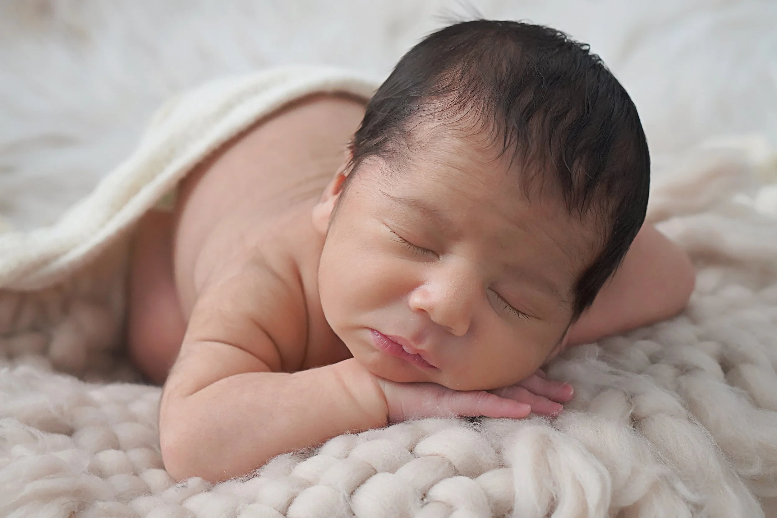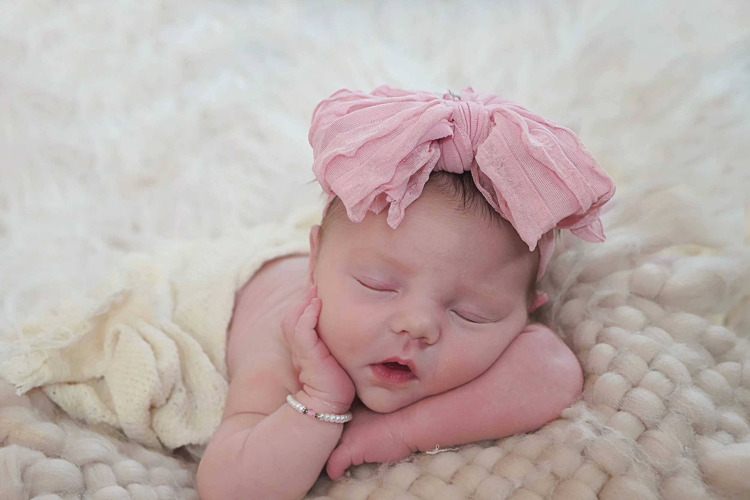 My focus is the baby. While I use some props, the props are not my focal point and I prefer to capture your baby in the most natural and beautiful way. Parents, siblings, and pets are welcomed to join into the session.